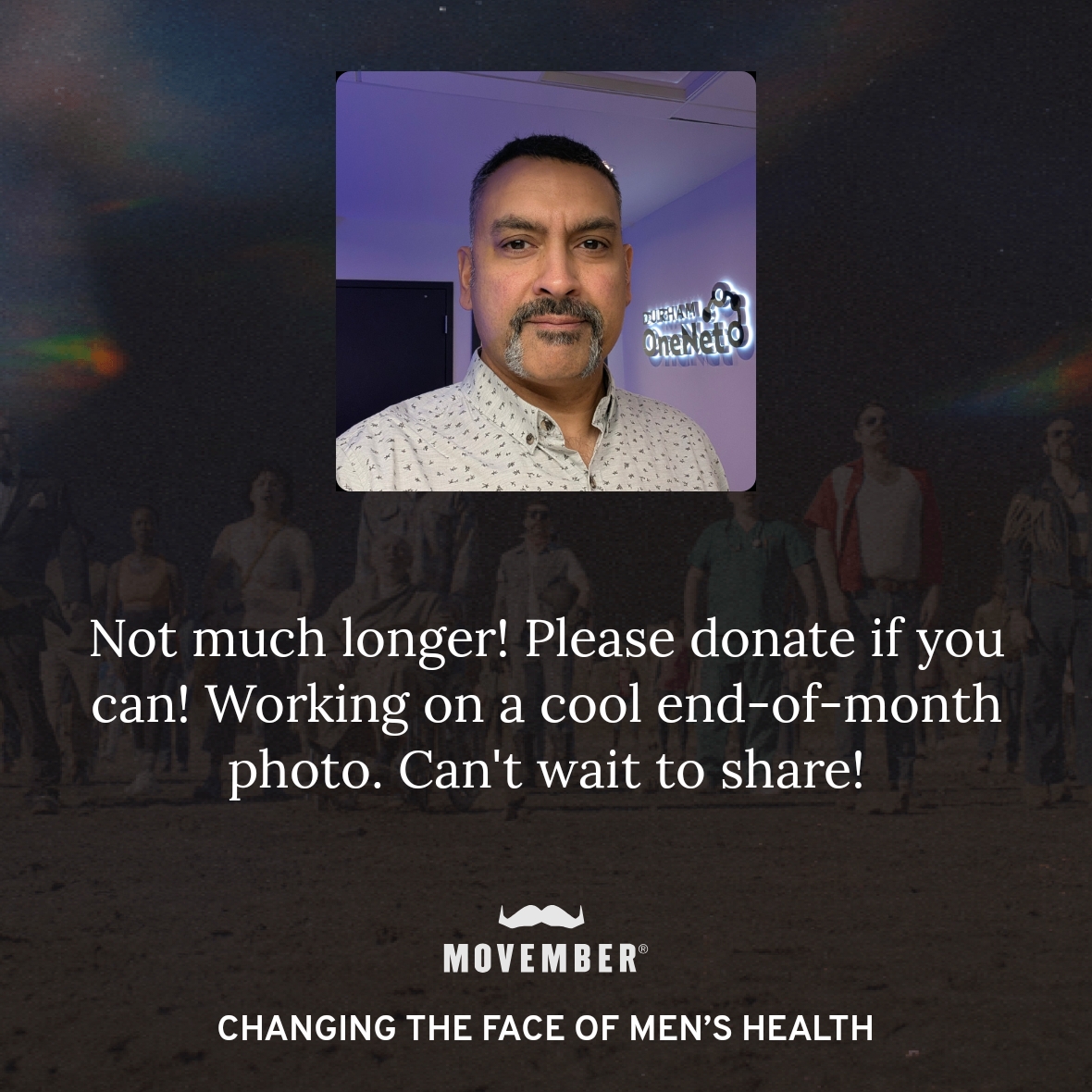 I'm moving 60km this Movember for the 60 men we lose each hour of every day.