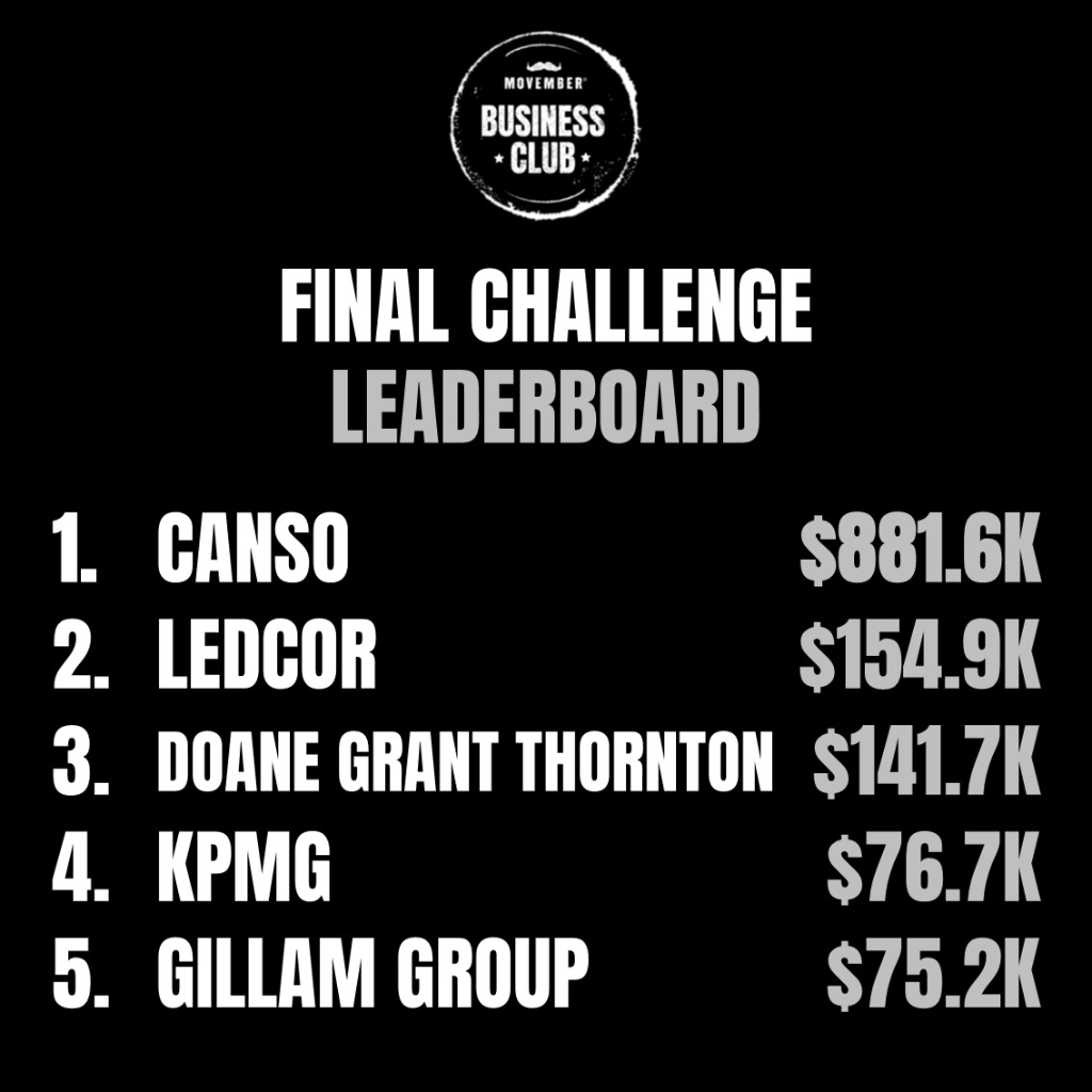 Let’s finish strong and show the country how the Movember Business Club leads for men’s health.